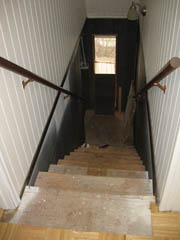Pictured is the existing stairwell with landing taken from the top and bottom. The current treds are two 2x6, risers are pressed board. The task to be completed is as follows:
